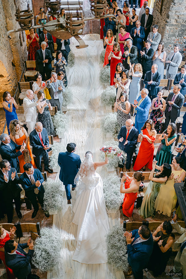 It has 150 chairs for guests, plus spaces on balconies and surrounding areas that allow more attendees to appreciate the ceremony. It is equipped with an altar, kneelers for the bride and groom, a tablecloth, candles and all the necessary accessories for the priest, offering a complete, functional and charming environment for your celebration.